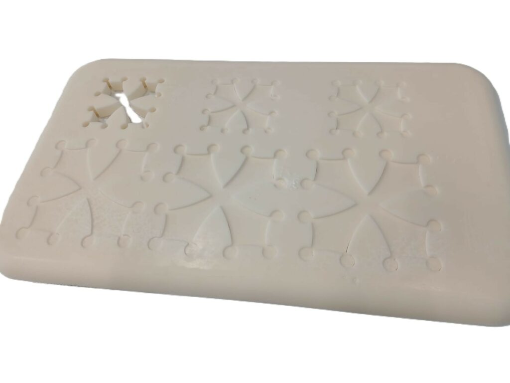 Nous avions découpé en terre cuite, en acier inoxydable (médaillon), en carrelage, en acier (remplace la croix de Saint-André)… la petite dernière a été découpée en graisse animale, une première pour nous !